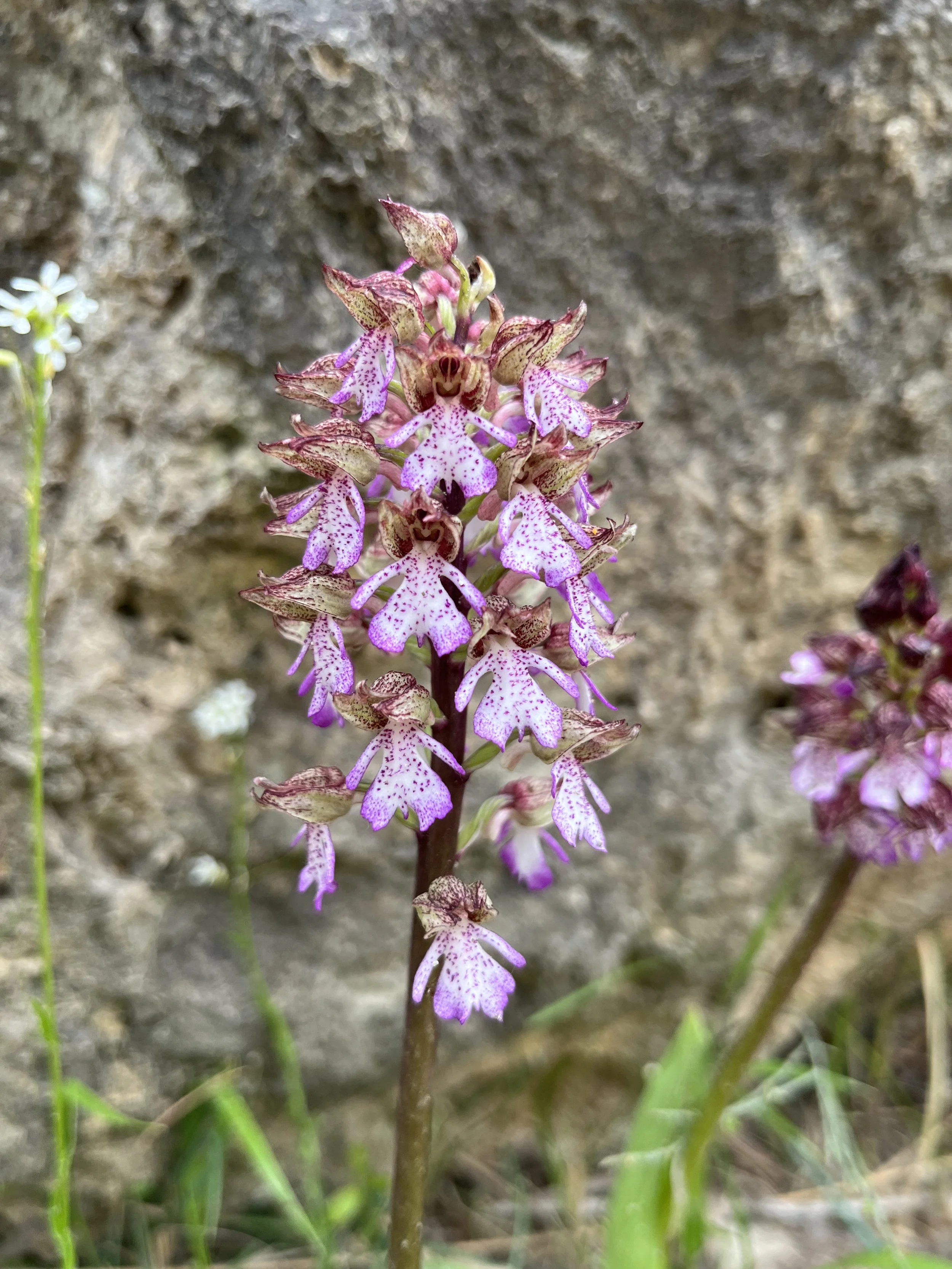 Orchis purpurea is found throughout southern Tuscany at relatively low elevations (500 to 800 feet above sea level), blooming in March and April. It is not unusual to find this species alongside country roads and in old olive groves.