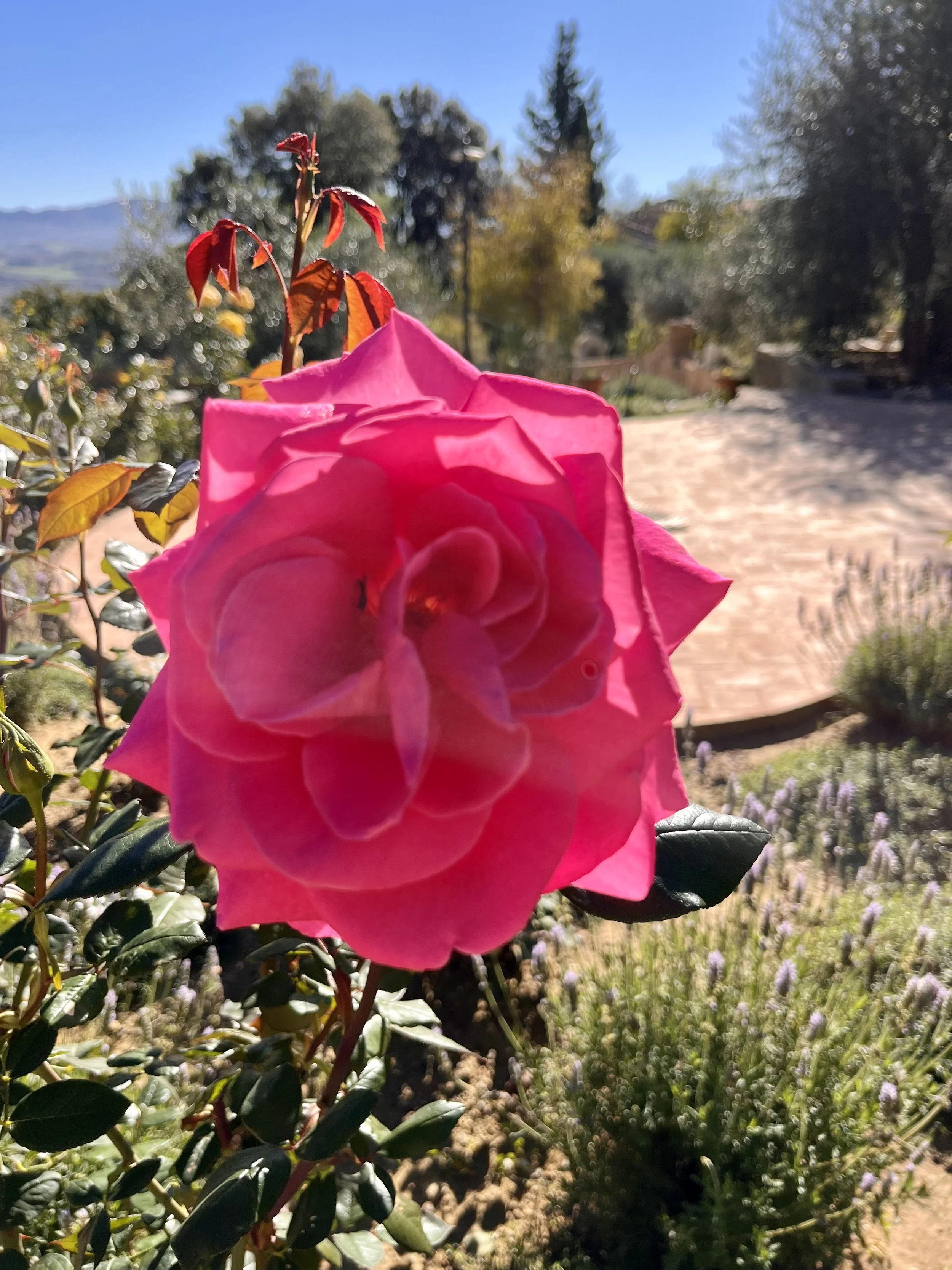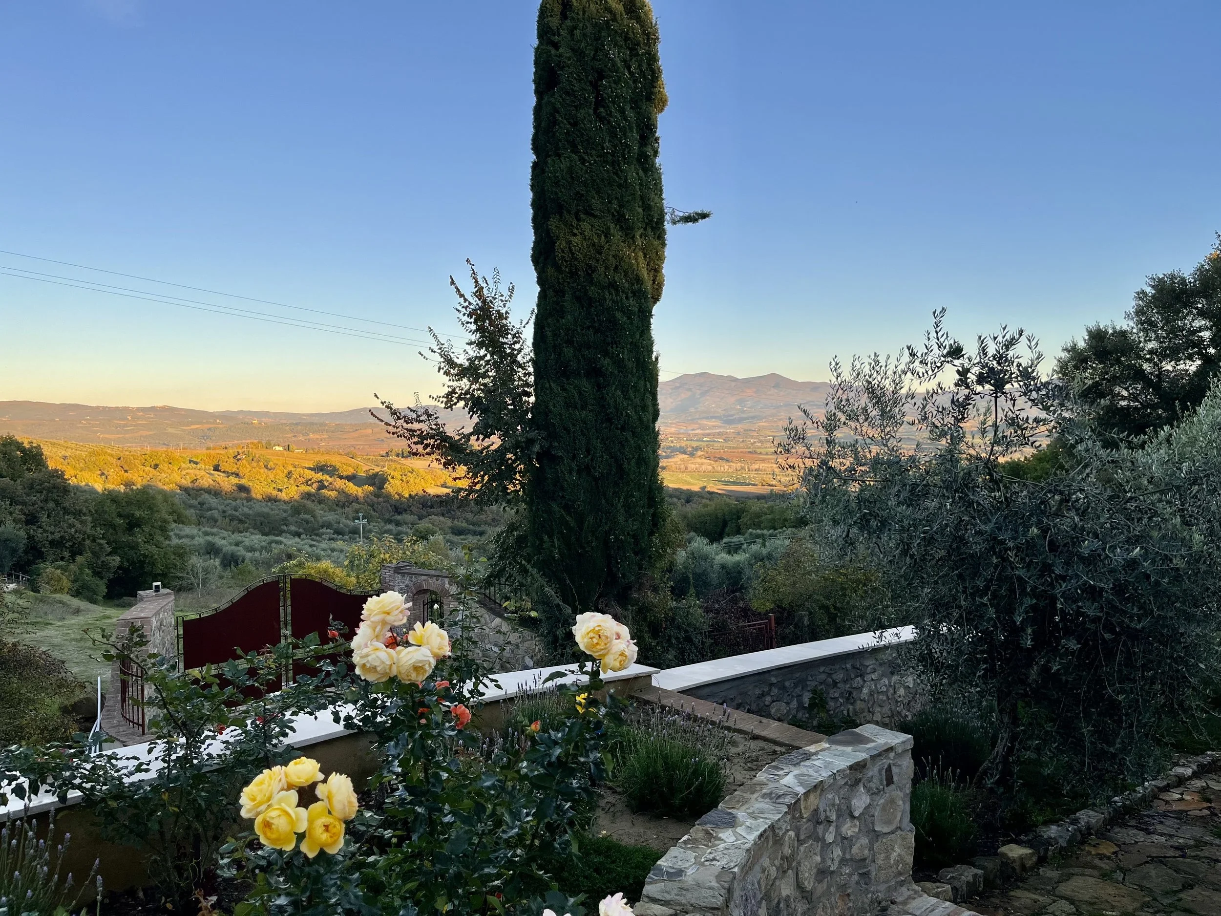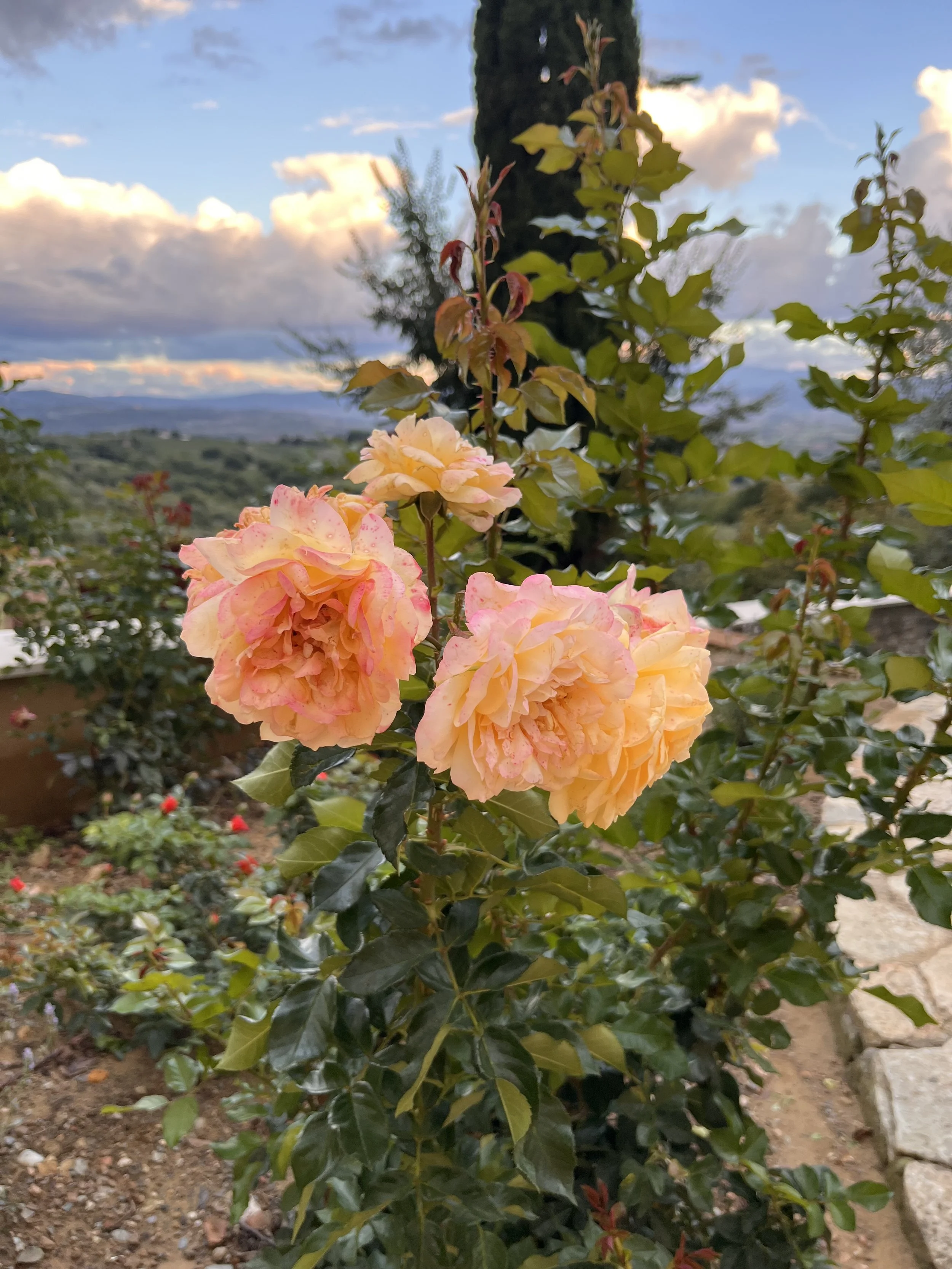 Detail of Rose Garden at Cas’ Anita, with Monte Amiata and Monte Labbro in the Background, at the “Golden Hour”