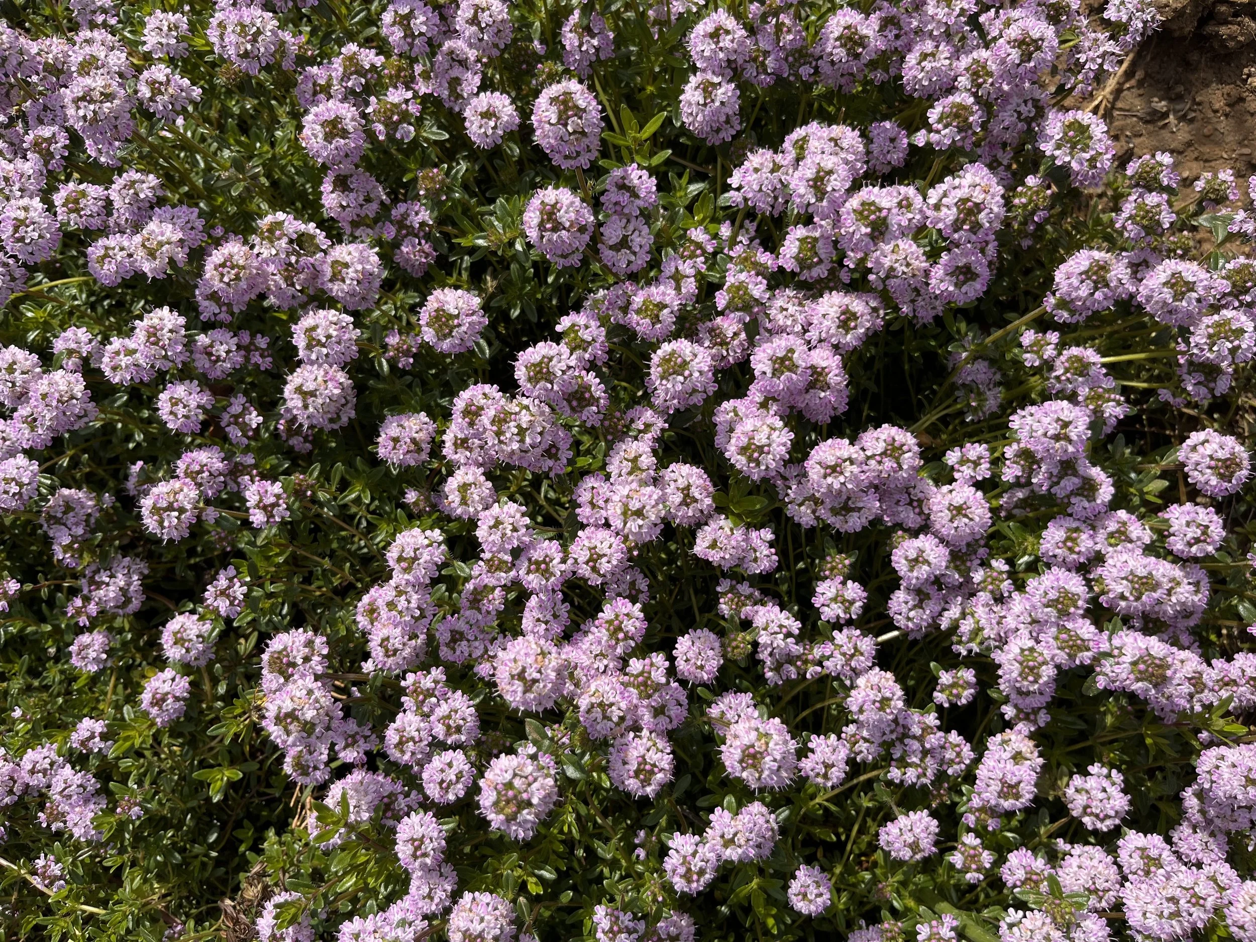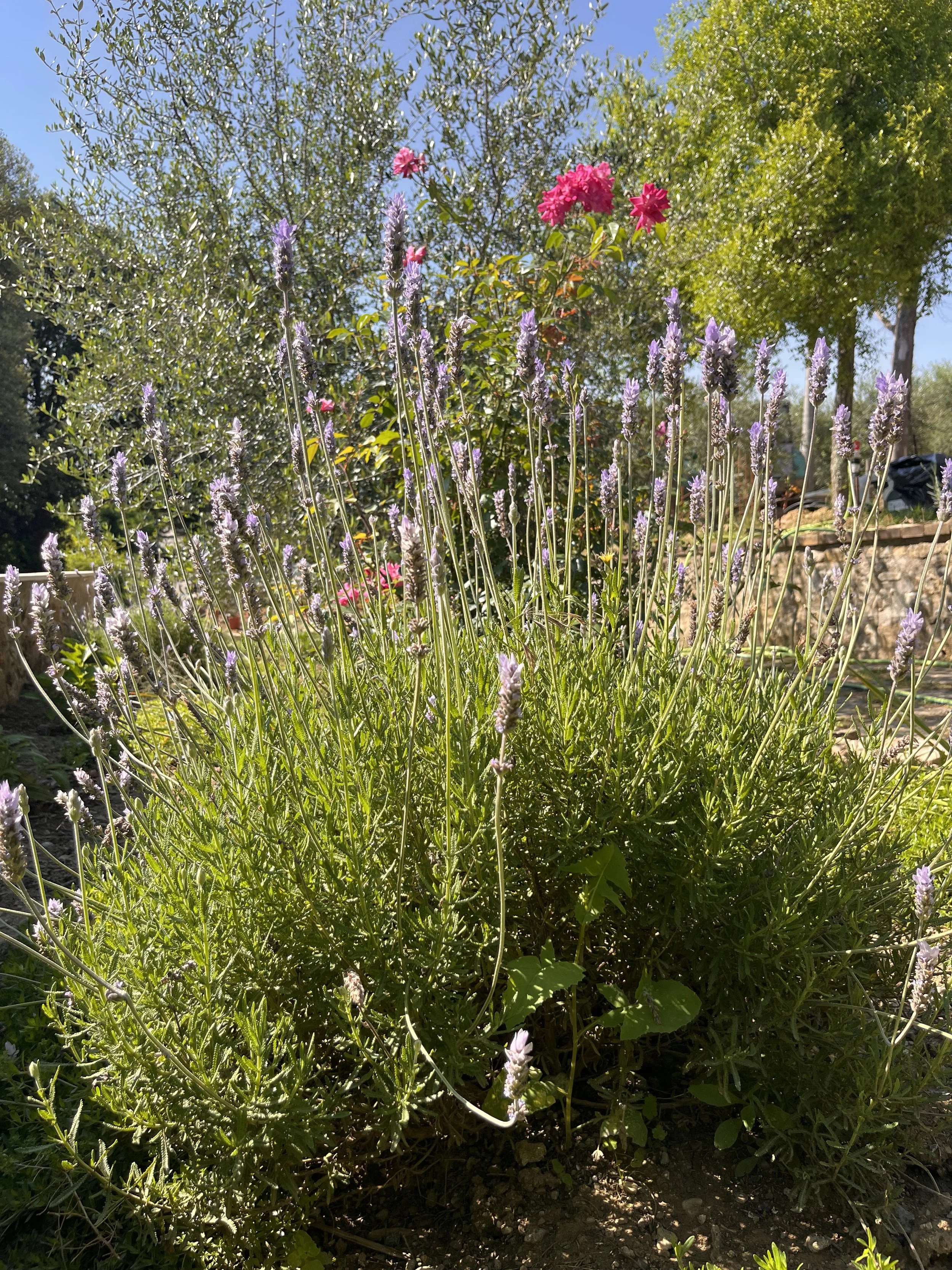 Despite the heat, the garden is growing in leaps and bounds at the moment. The English lavender (Lavendula angustifolia) is thriving in the heat, the santareggio (Satureja montana) is spreading to cover the ground and the mentuccia (Calamintha nepeta) is out of control. It desperately needs to be trimmed. The English lavender is in bloom year round. The santareggio makes an excellent and colorful ground cover. I was hoping that it would keep the vipers out of the garden, with it’s pungent, savory odor, but, based on experience, it doesn’t seem to do that. The mentuccia also spreads like a ground cover until late Spring, when it starts to grow vertical. I prefer to keep it clipped close to the ground. Otherwise it becomes woody with tall racemes of fragrant flowers, but, untrimmed, it begins to look like tumbleweed.
