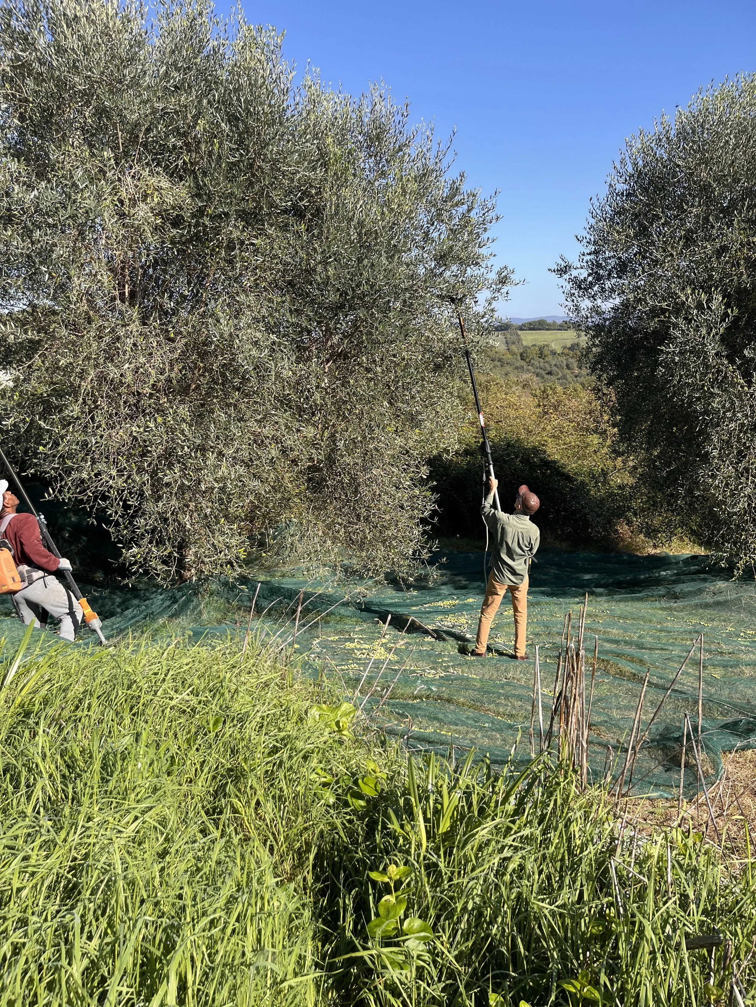 The Fall is harvest time for olives in Southern Tuscany. Late October through November is the prime time for the harvest, when the olives transition from green to a purple-black color. This indicates optimal ripeness for producing oil.