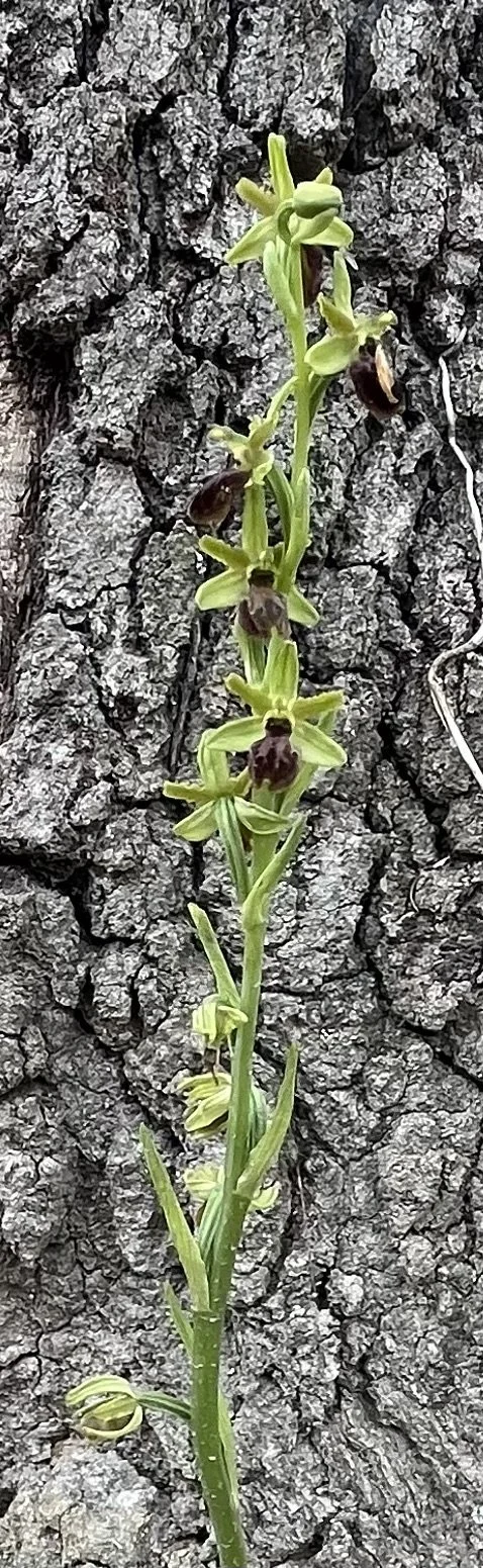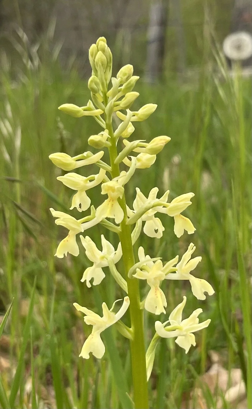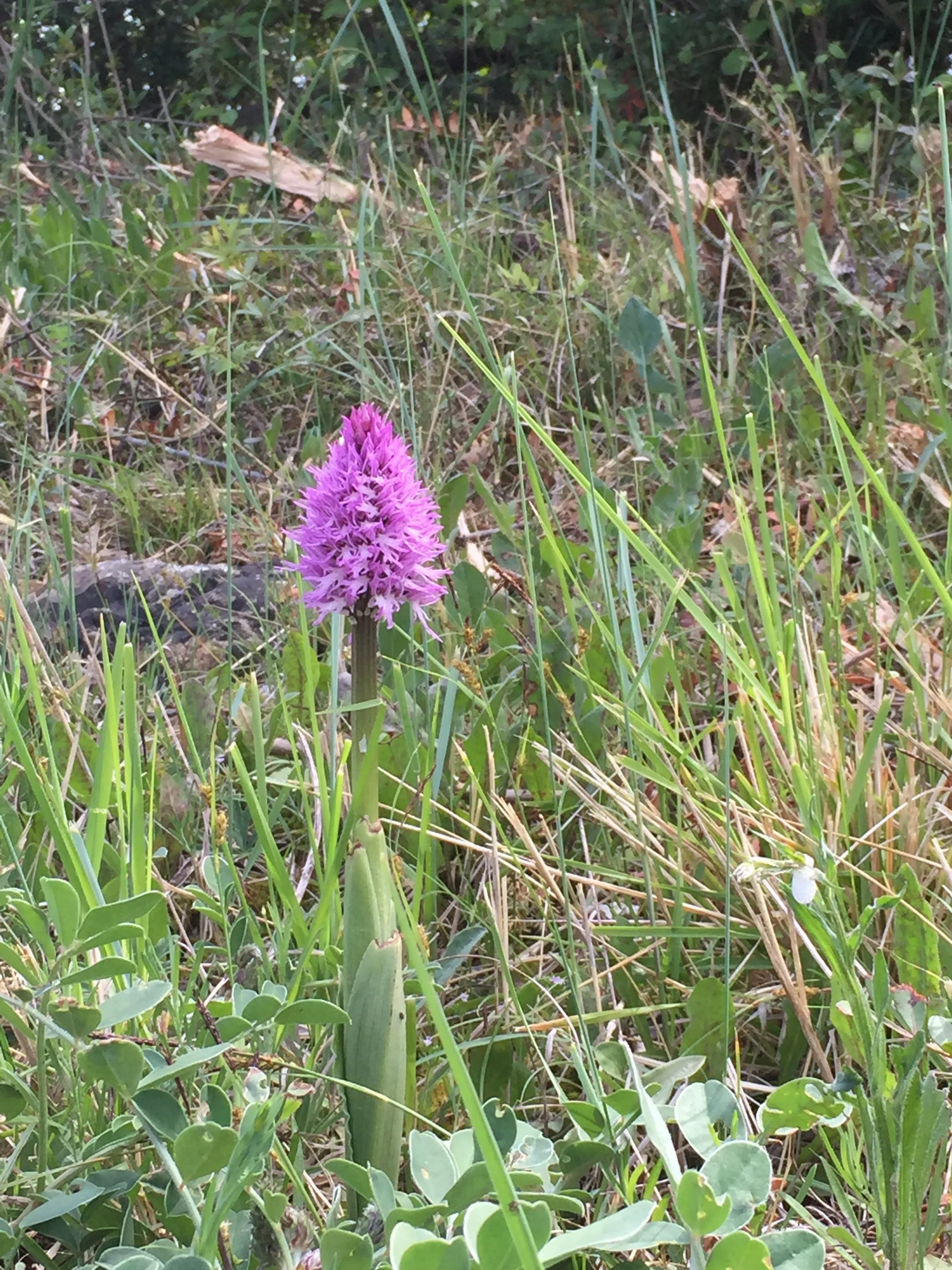 A colony of Orchis pauciflora was found at a cool elevation (approximately 2000 feet above sea level) along the gravel road between SP160 and Eremo David Lazzaretti in the province of Grosseto.