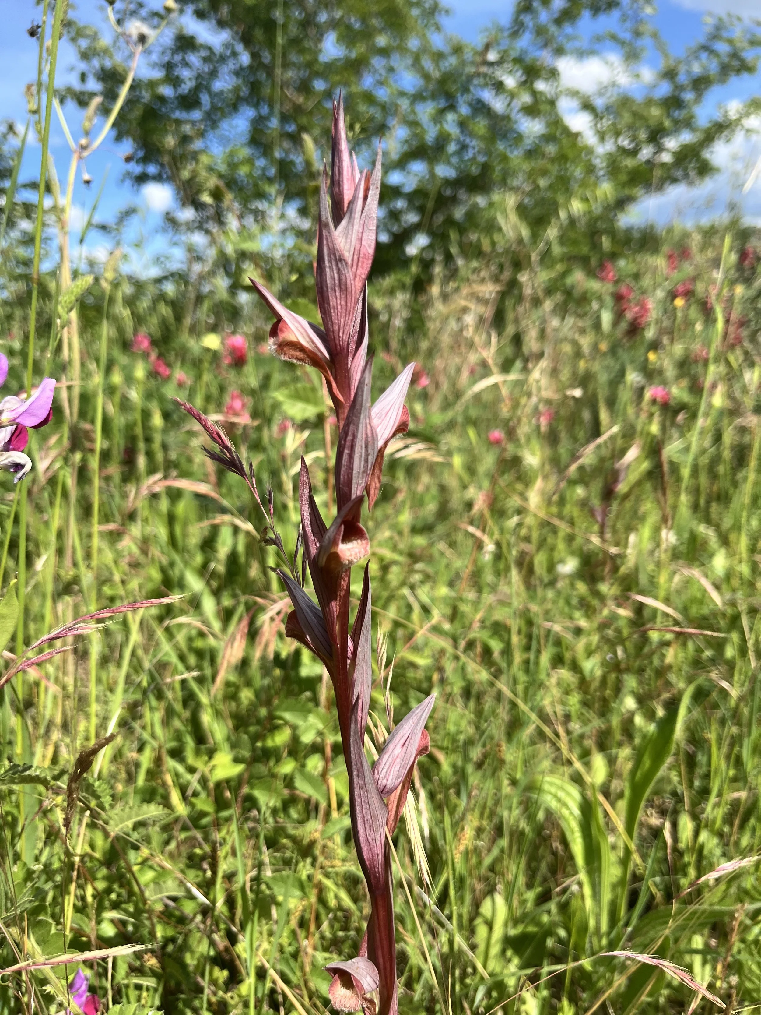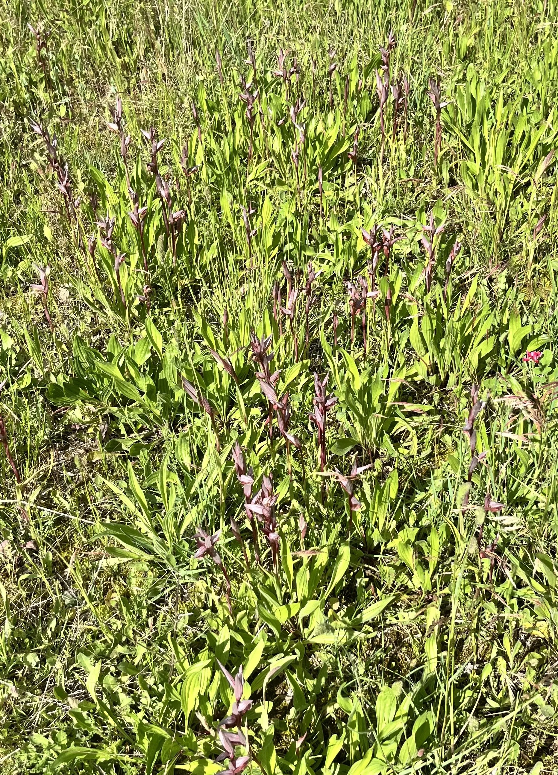 A colony of Serapias vomeracea can be found on the east side of the Strada Provinciale Leopoldina just outside of Paganico (GR) across the street from the entrance to Agriturismo Piatina. This roadside location is occasionally mowed, but the orchids continue to come back every year.